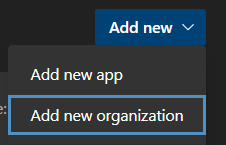 우측 상단 Add new 버튼을 클릭하여 [앱] 혹은 [조직]을 추가하자.