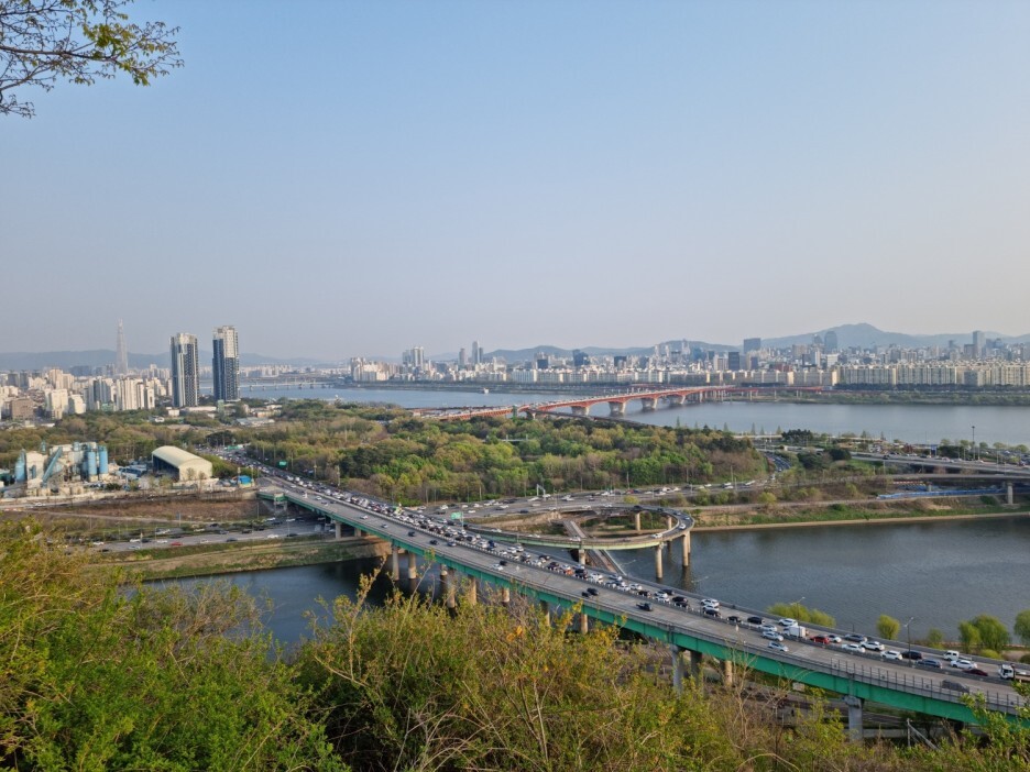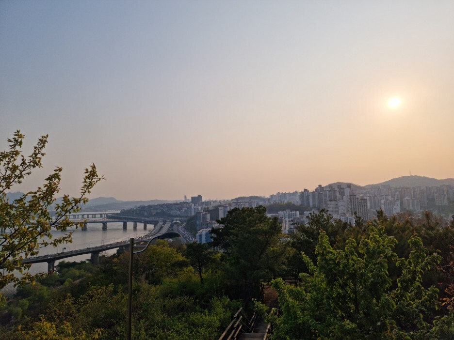 해가 지면서 서서히 물들어가는 하늘과 하나둘 늘어가는 퇴근길 차량들의 헤드라이트 물결을 감상하기에 일품이다.