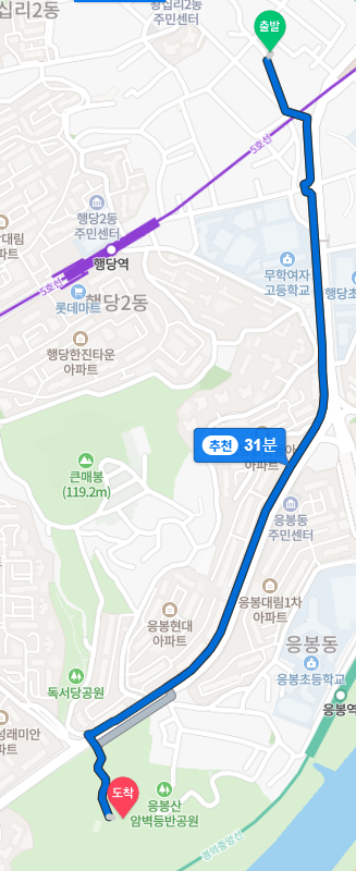 응봉산 인근은 다소 오래된 아파트들이 줄지어 있는데 서울의 정취를 볼 수 있는 곳이다.